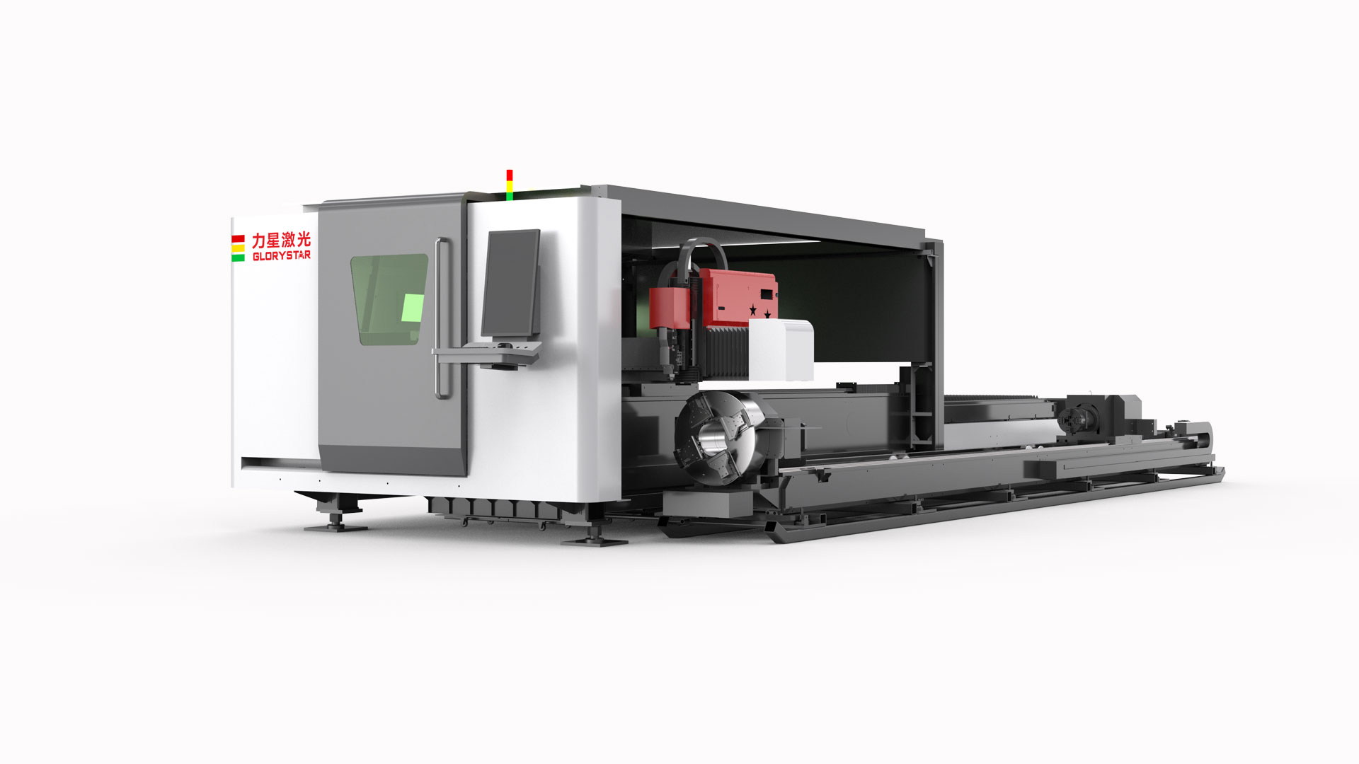 随着制造业对复杂构件需求的增长,板管一体激光切割机通过集成板材与管材加工功能,成为现代化工厂的核心设备。以力星激光的GS全防护板管一体激光切割机为例,其采用高刚性龙门结构,配备旋转工作台与精密卡盘,可同时处理厚度0.5-30mm的板材与直径10-300mm的管材。通过自动切换切割头与AI视觉定位系统,设备能在5秒内完成板管加工模式转换,效率较传统分体设备提升40%以上。在工程机械领域,该设备可一次性完成挖掘机液压管套孔与支撑板轮廓切割,消除二次装夹误差,实现微米级加工精度。
